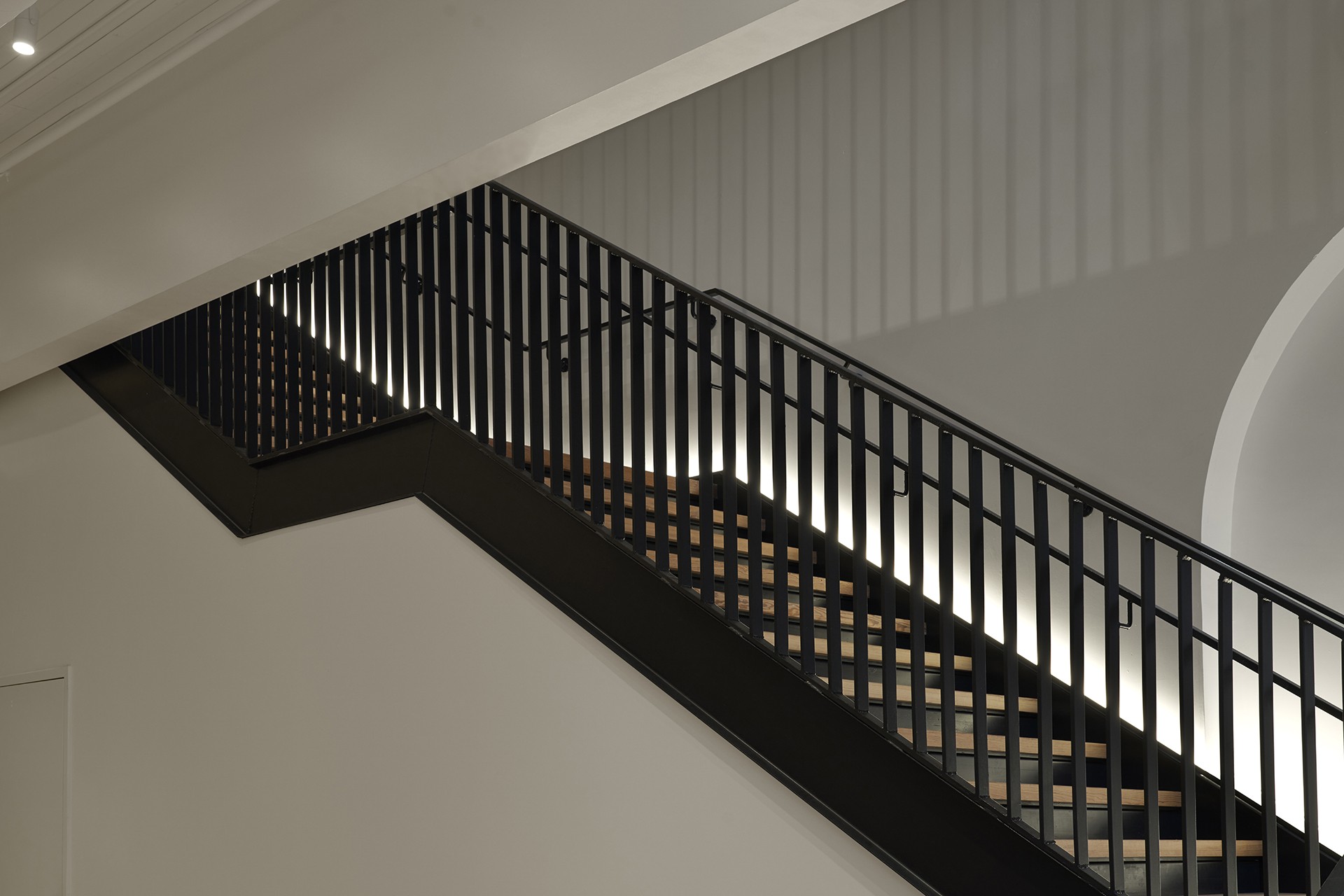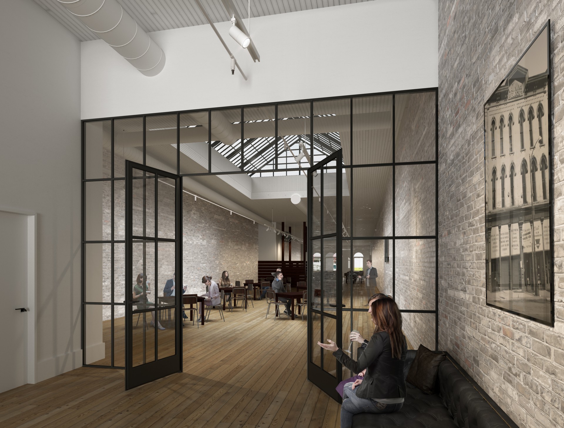 The renovated 20,500 SF interior will be used as a commercial event venue with the flexibility to rent out spaces of different sizes depending on the need of the event. All three public floors will be served by the adjacent Wildhorse Saloon. Connections to the Wildhorse were made by cutting through the existing party walls (up to 4’0” thick in some locations). New key design elements include steel rails, glass partitions to mimic the hand-blown qualities of that of 1875, and the minimal steel cut-throughs to the Wildhorse. All other elements added to the space were intentionally painted white. This design approach allows for two things. First, new elements being white allows the historic pieces to stand out in the spaces. Secondly, the white box spaces allow each user to add to the space as needed for their event.