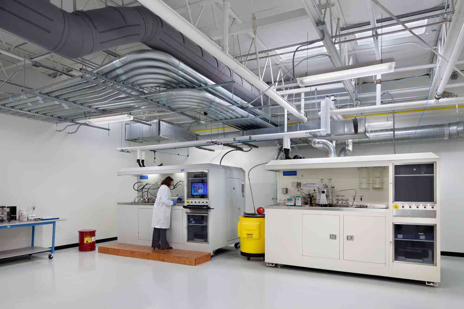 Clarcor purchased a 63,000 SF warehouse in Columbia to house their new innovation center. The large warehouse was converted to contain a myriad of laboratories to test fibers produced for Clarcor products. All spaces were temperature and humidity sensitive. Chemical scrubbers, vibration isolation for microscopes, and 3d printing areas were also created. A new second story mezzanine was extended to house several of the laboratories. New HVAC, electrical systems, and lighting were added.