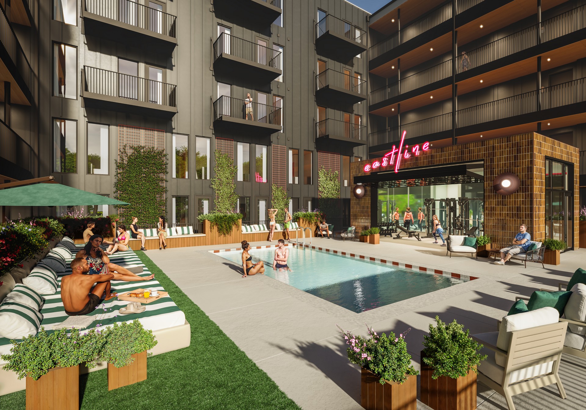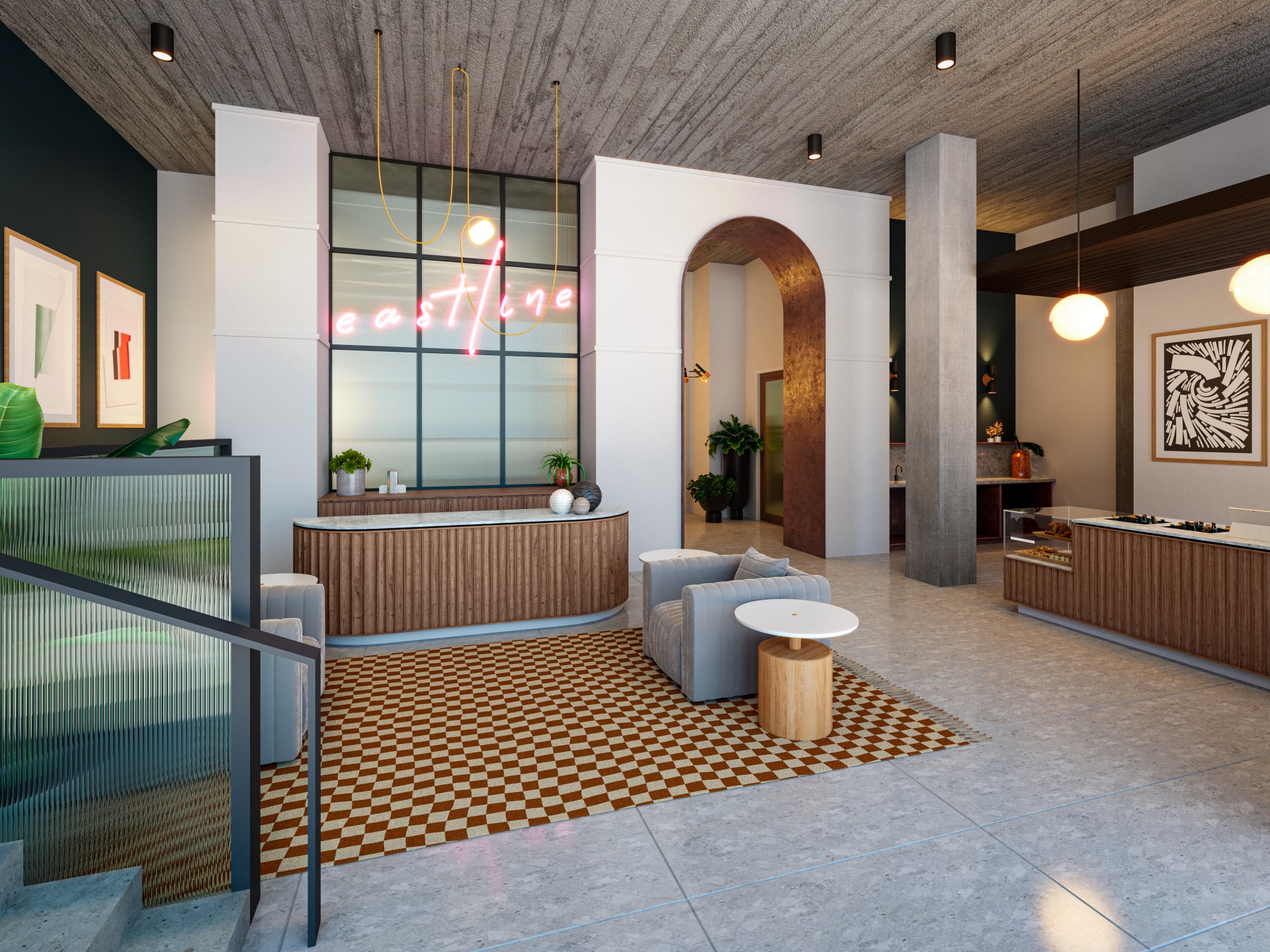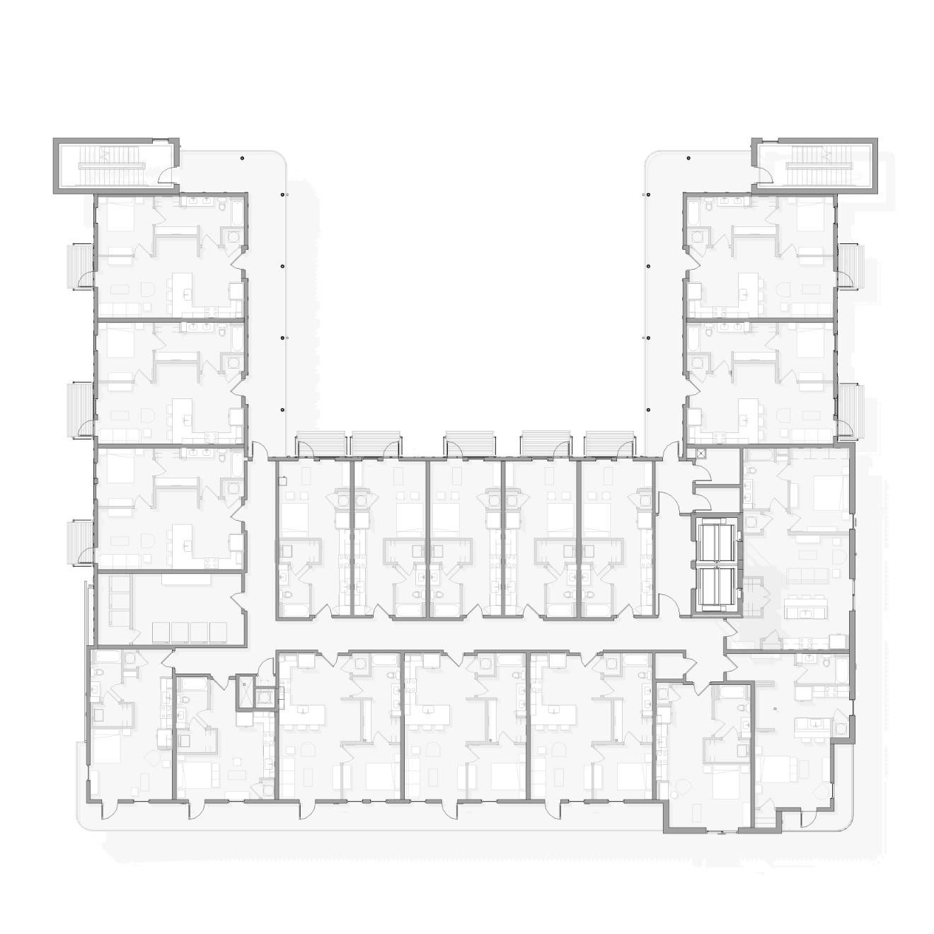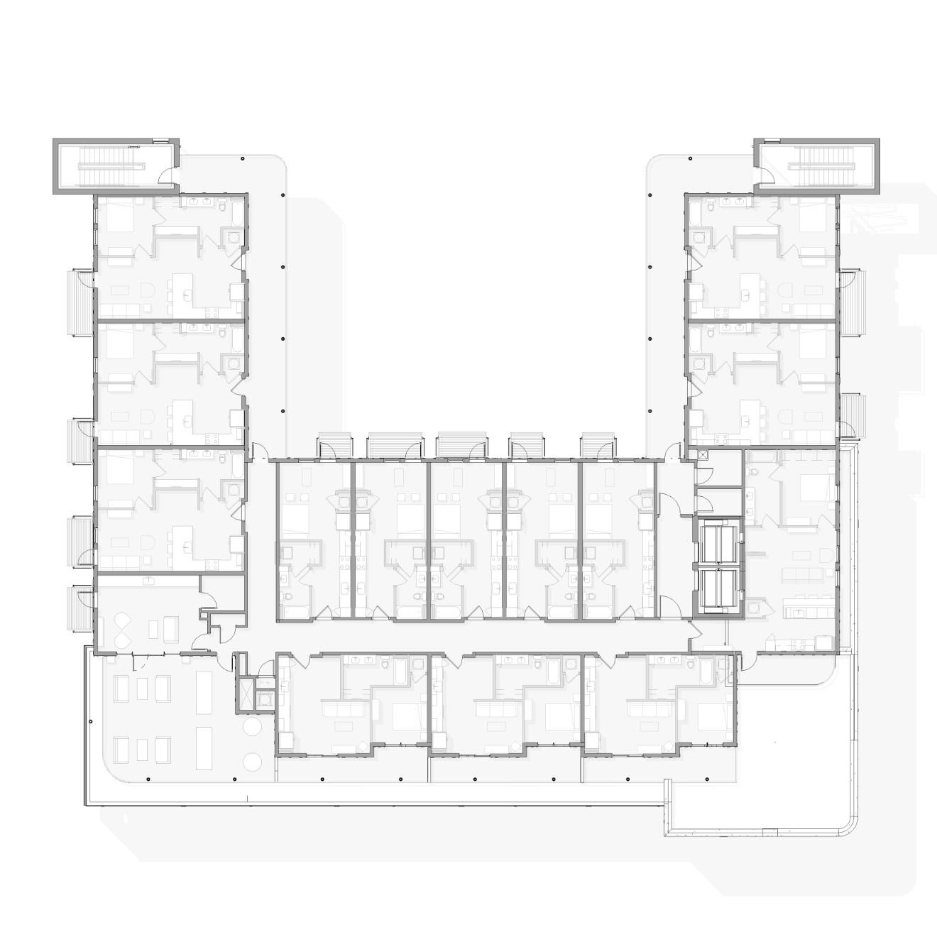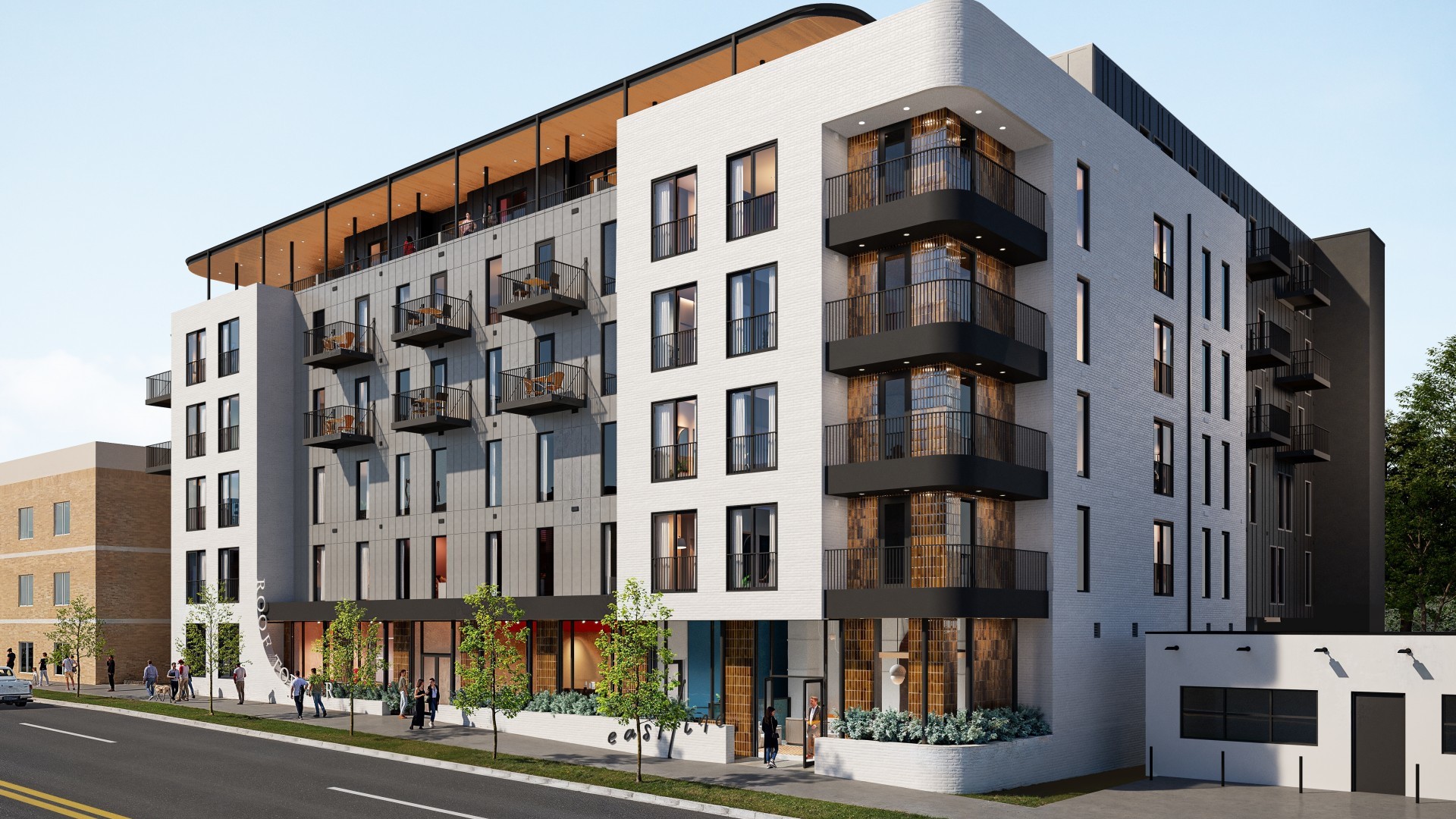 This 78 unit, 6 story, Airbnb boutique hotel is located on the main corridor in the eclectic East Nashville area. A small wine bar and coffee shop will be located at street level with playful design to reflect the surrounding personality of the area. Green roof, roof decks, and a more varied use of materials tie into the existing and future plans for the area.