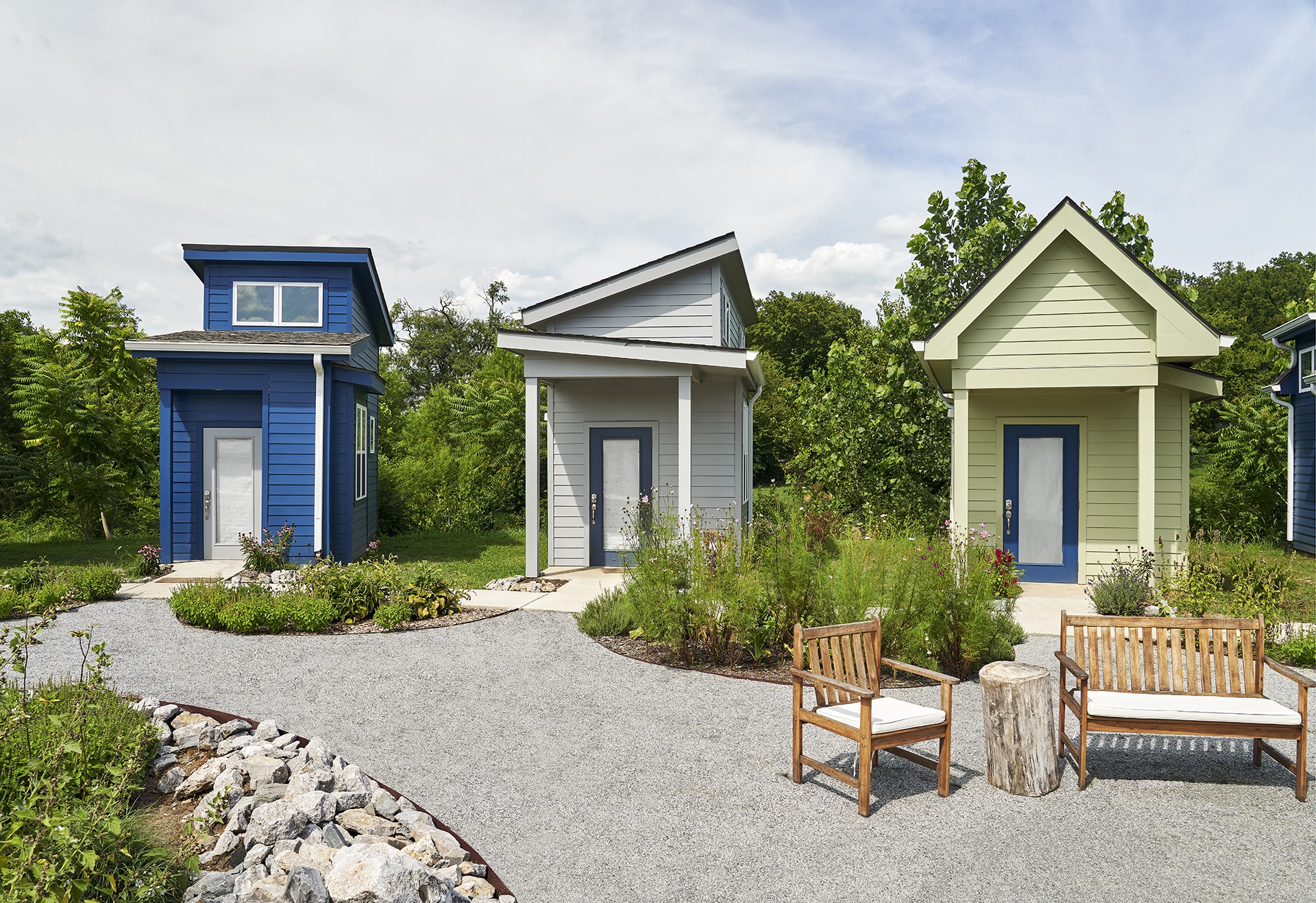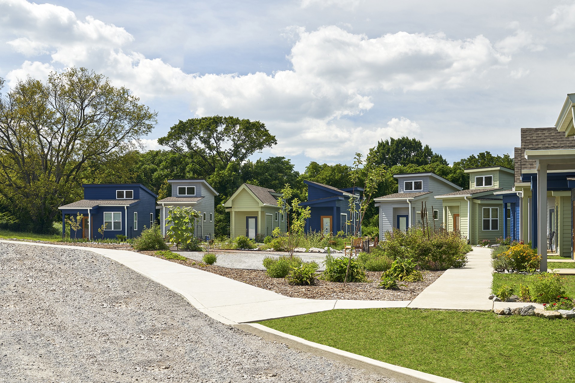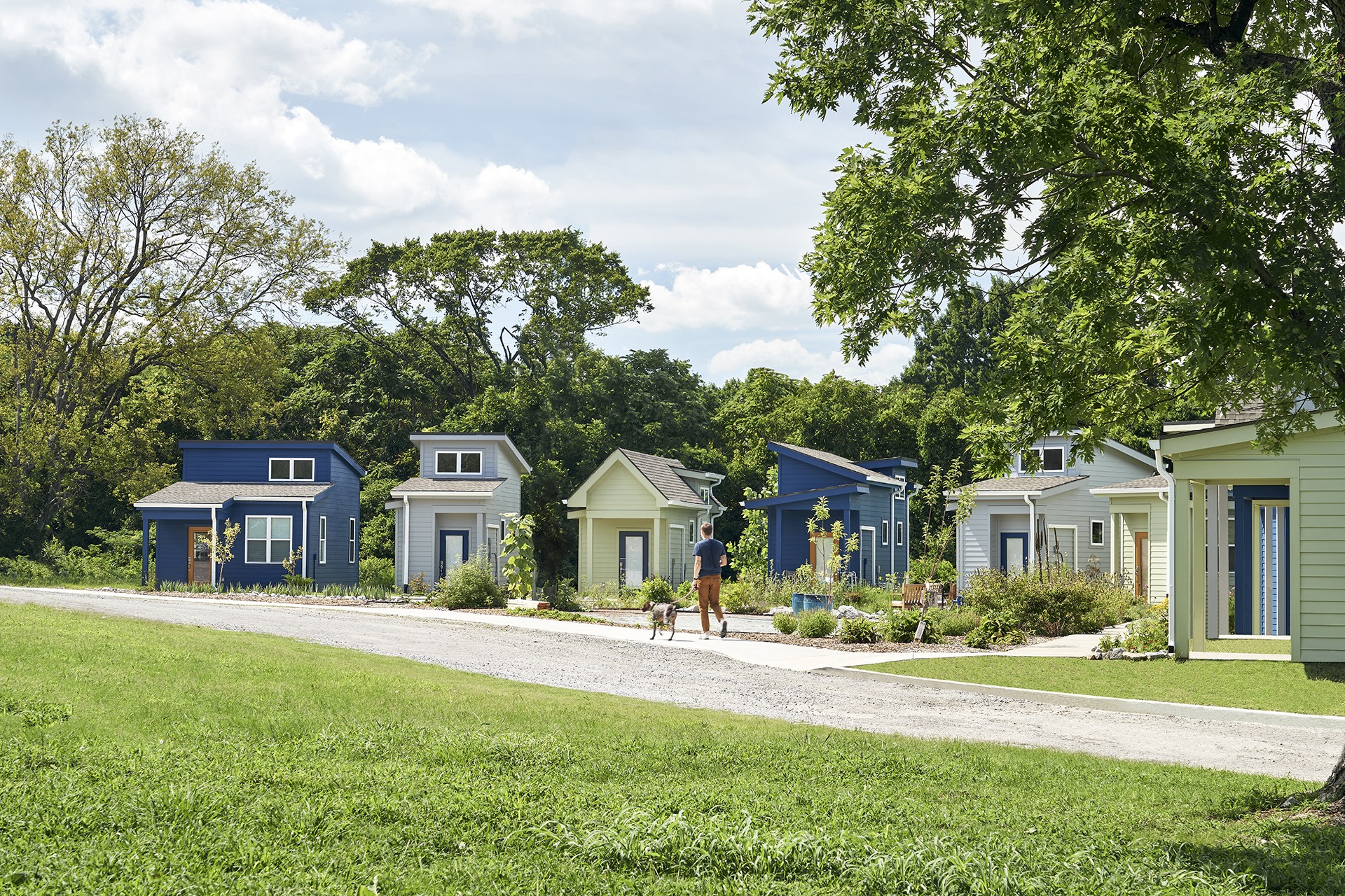 Centric and Open Table worked with the city of Nashville to design a true single-family detached home in all senses of the International Residential Code, while maintaining a minimal footprint and building area. Centric was able to accomplish this in units of 220 sf and under. The homes are built on foundations, hard wired and plumbed. The surrounding village layout supports community building with amenities such as community gardens and recreation spaces.