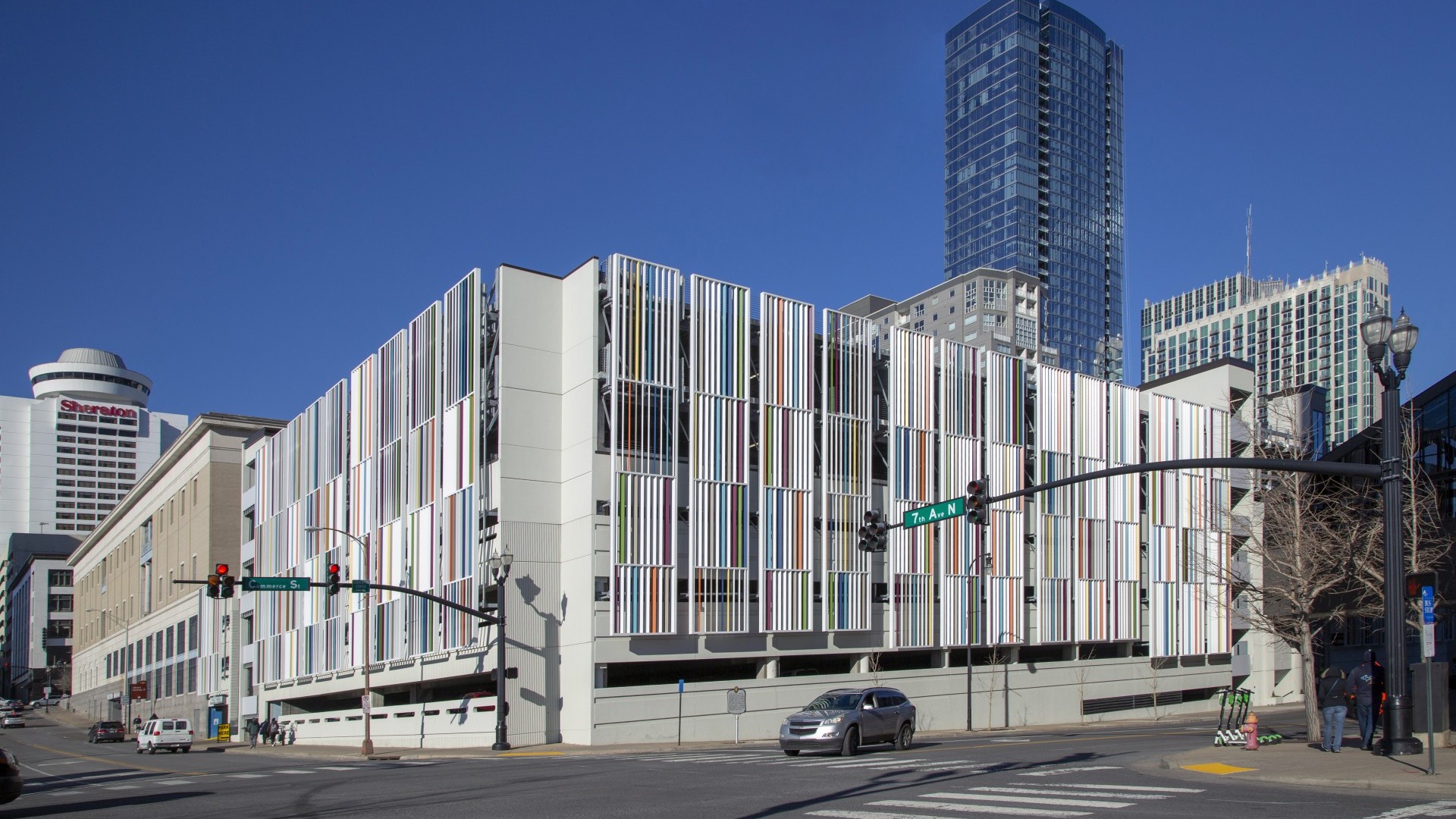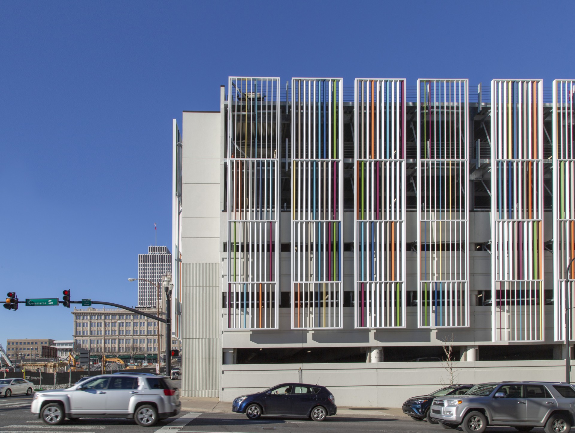 The city block that is now the downtown library and parking garage has been many things over the last 75 years, and for reasons that probably made sense at the time, it is a single project, but due to historic buildings that were incorporated and over-built by previous projects, there are 4 different structures (3 expansion joints), and no original drawings, for the garage that is our scope of work. Gresham Smith & Partners is the structural engineer and prime consultant for the project, and asked Centric Architecture to partner with them to design a 350-car addition (3 levels of parking) on top of the existing operational parking garage.