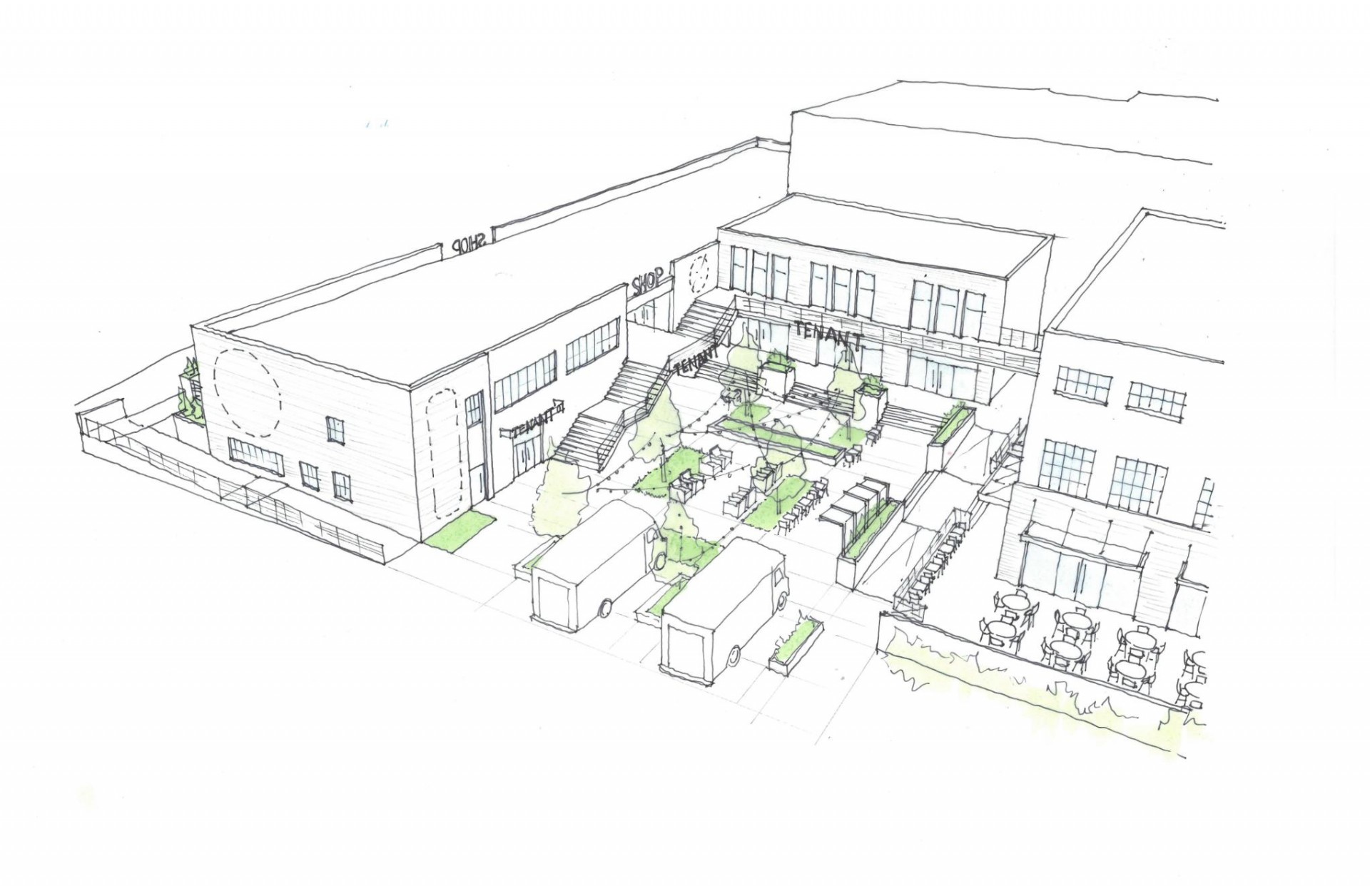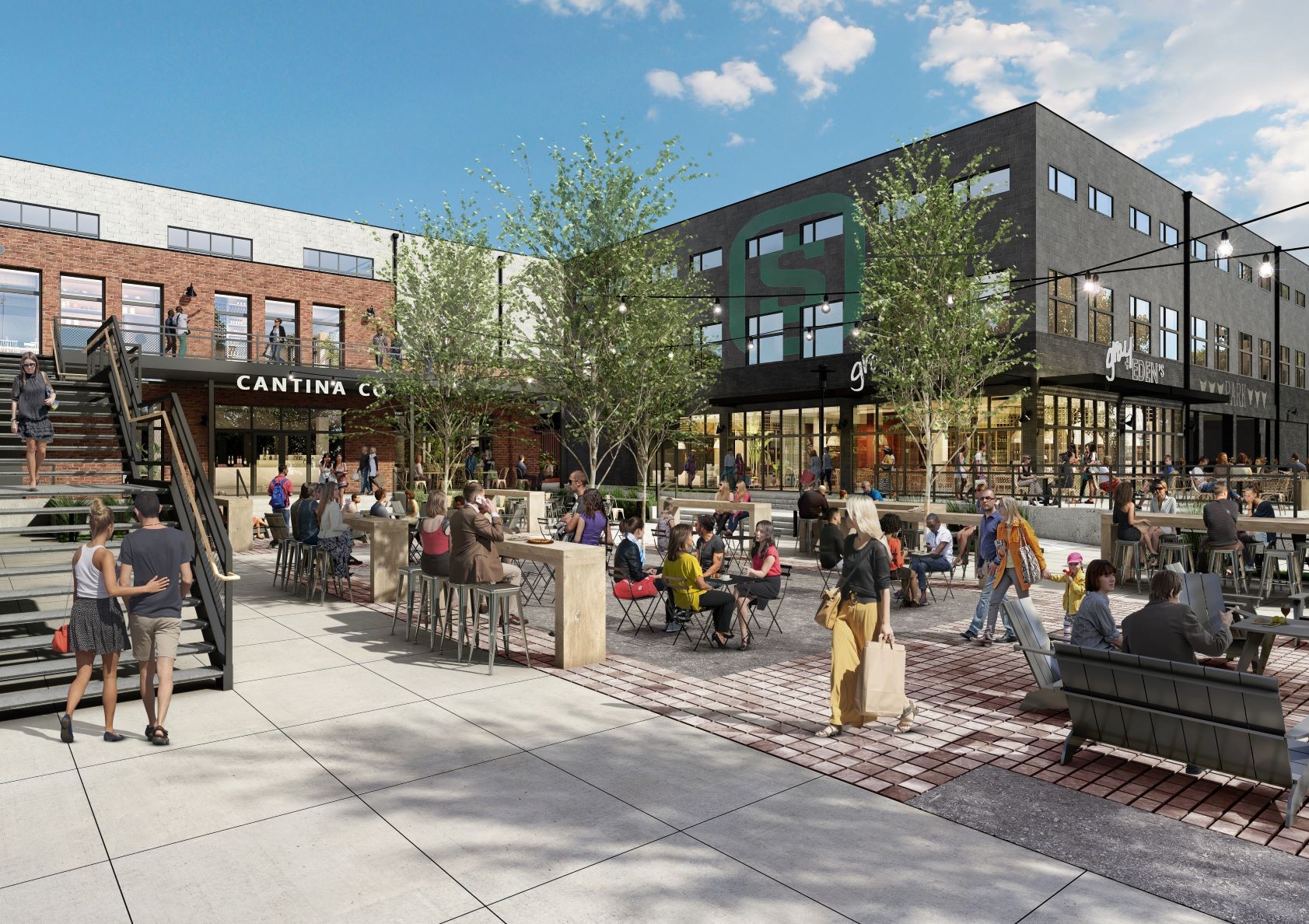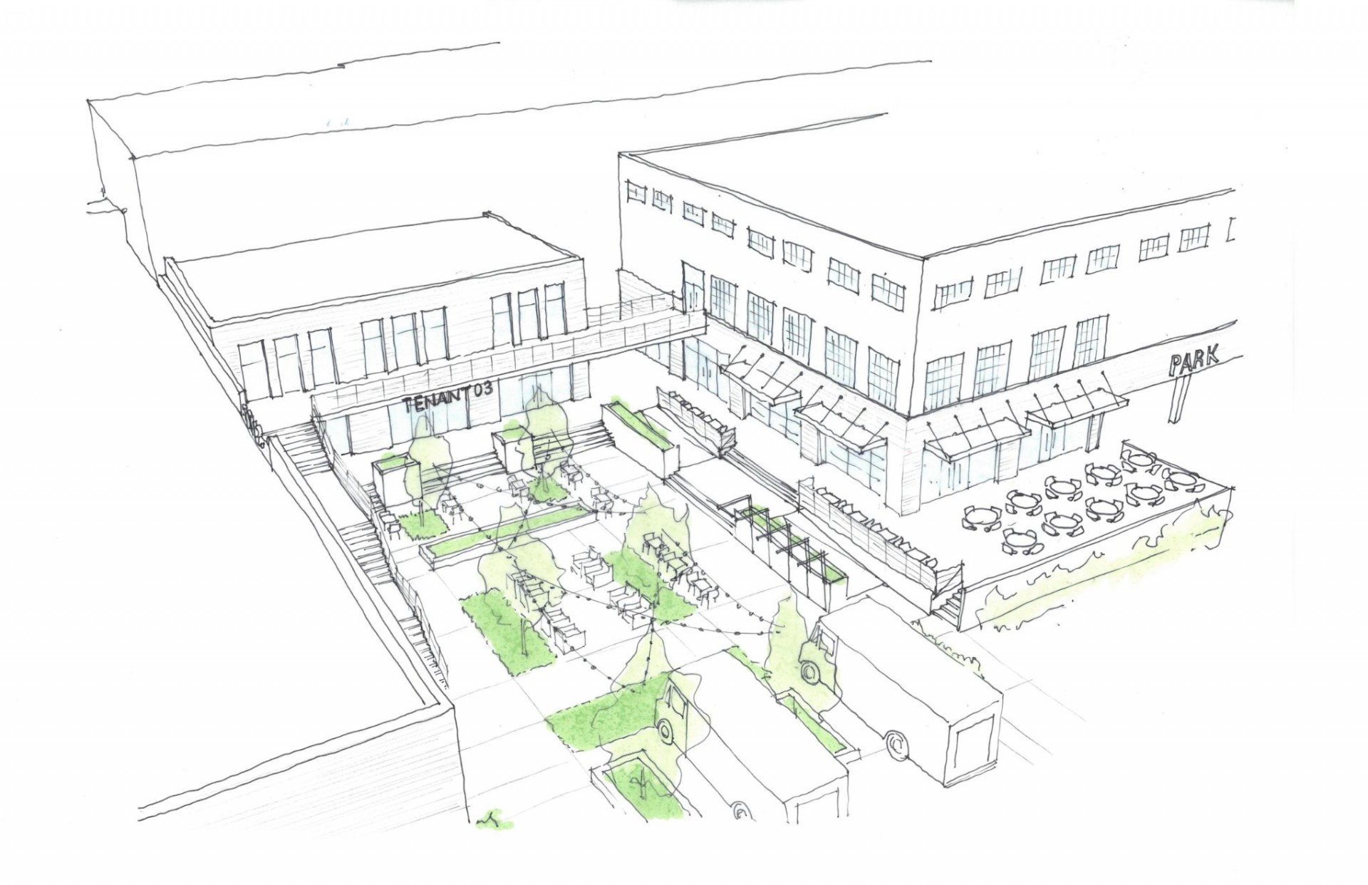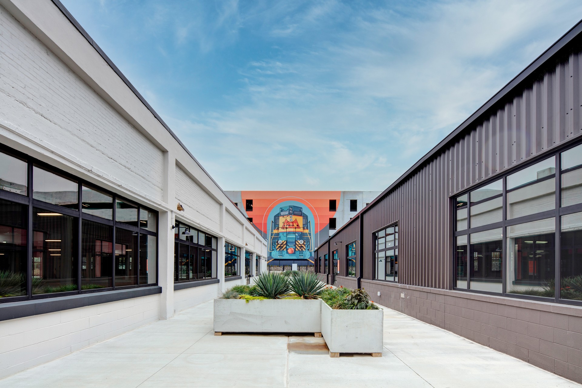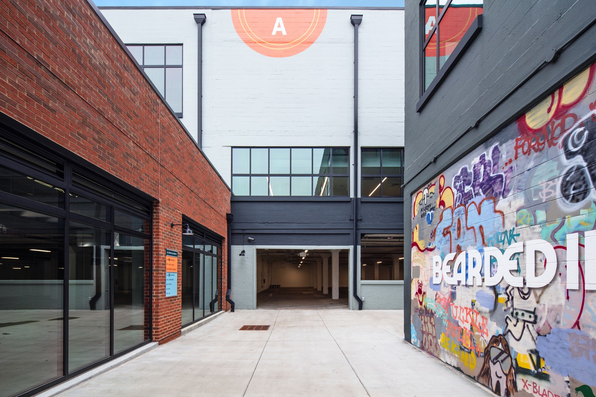 A new presence on Charlotte Ave will be created by a grand staircase leading to a commercial breezeway allowing views to the courtyard beyond. High ceilings, open steel and concrete structures, and masonry walls make for structures very difficult to replicate with new construction. They are wonderful assets to Nashville and will be celebrated throughout the design.