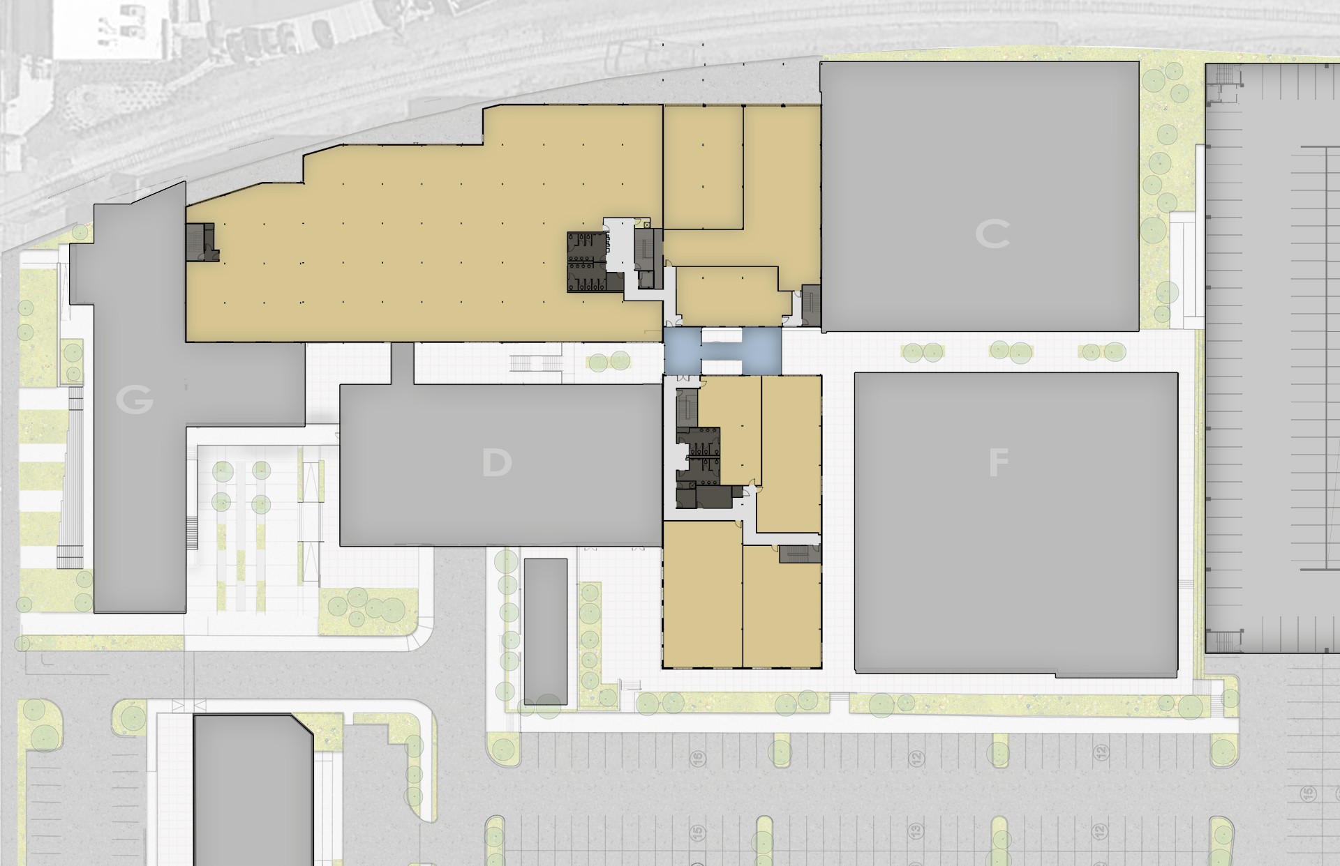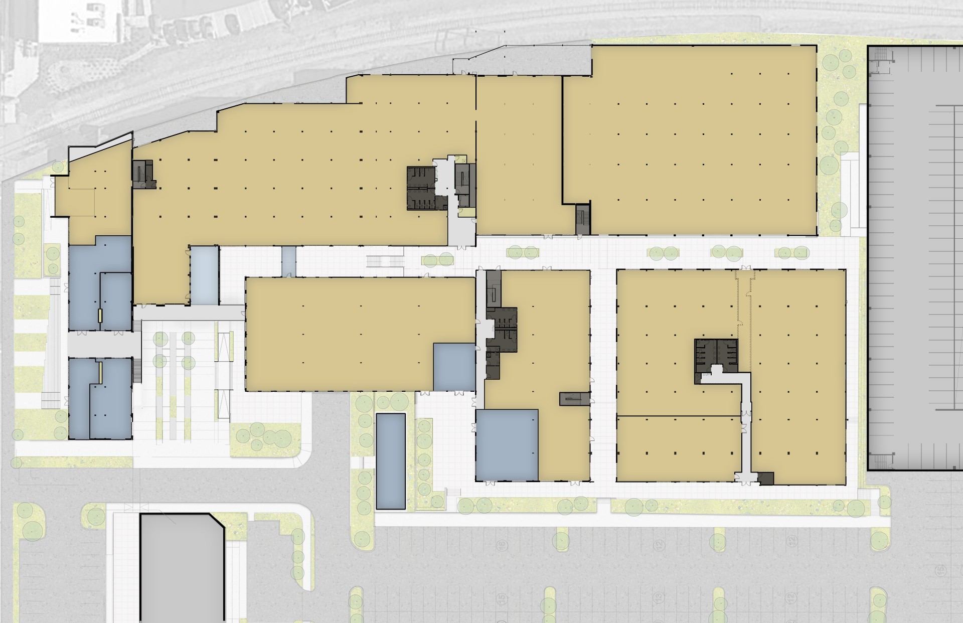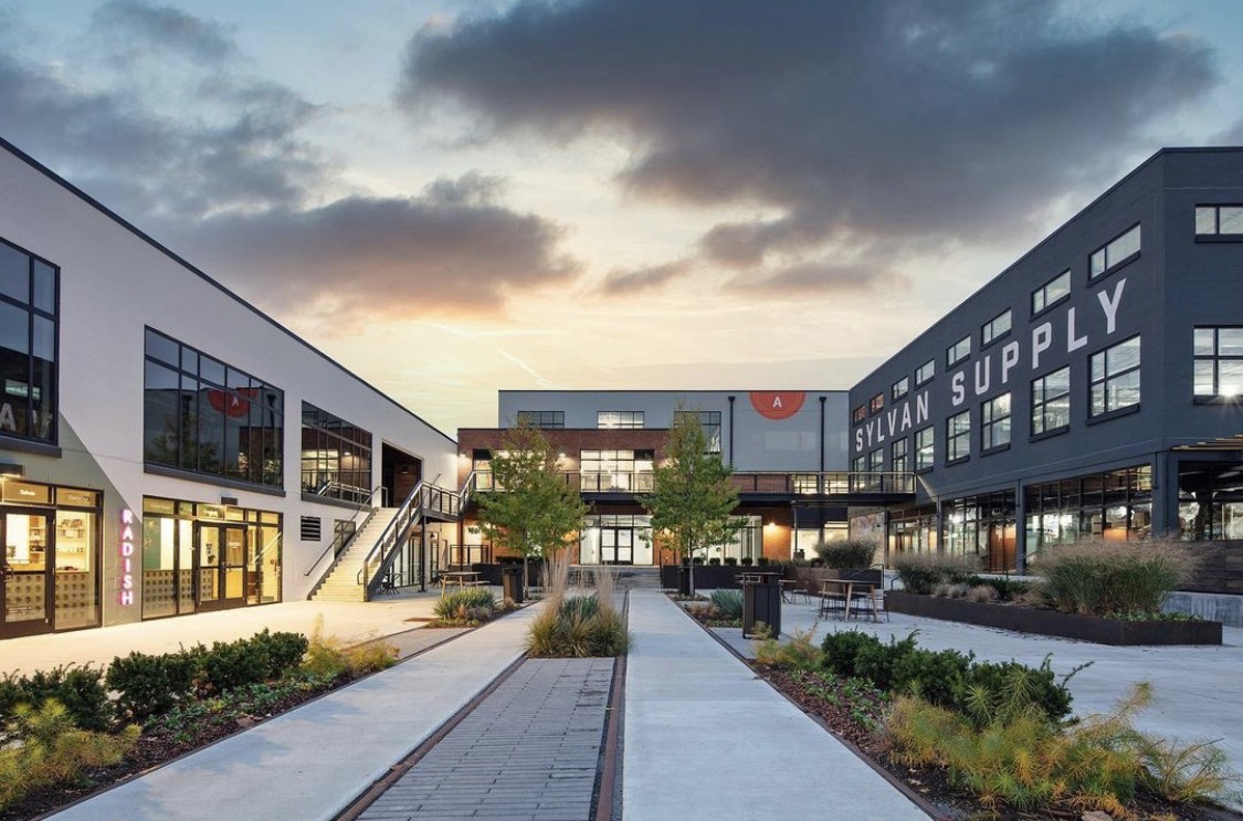 Sylvan Supply is a conglomeration of 7 buildings with the earliest dating back to the early 1940s. It has a rich history as a mill, which produced axe handles, dowel rods, and many other supplies. Situated along the railroad tracks adjacent to Sylvan Park in West Nashville, the 200,000 SF of warehouses are being converted to a mixed use community of creative office, retail, and restaurant. Portions of the buildings are being removed to create outdoor spaces, circulation paths, and to bring in natural light.