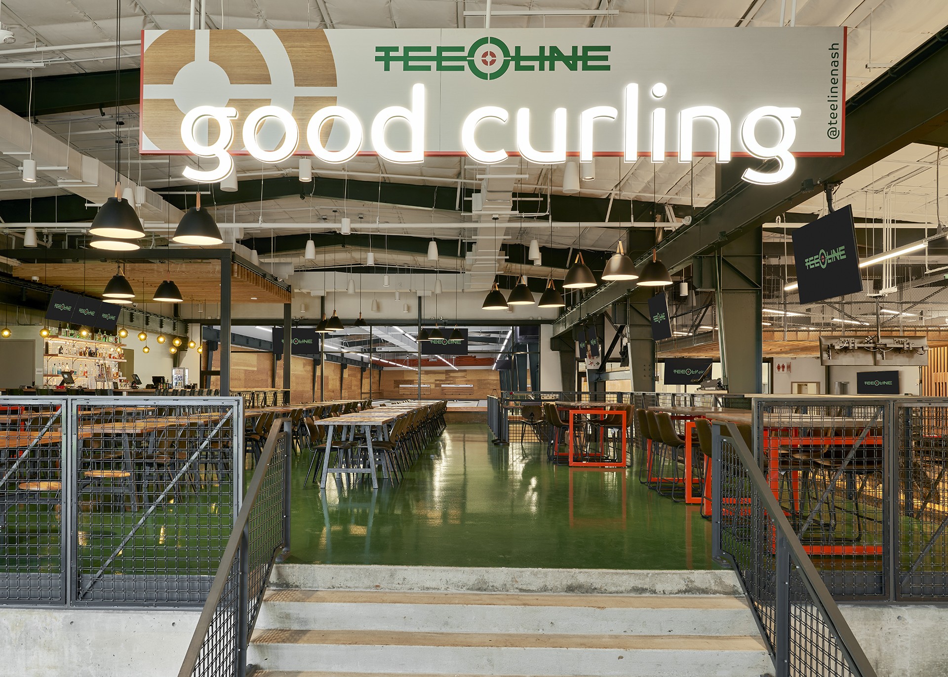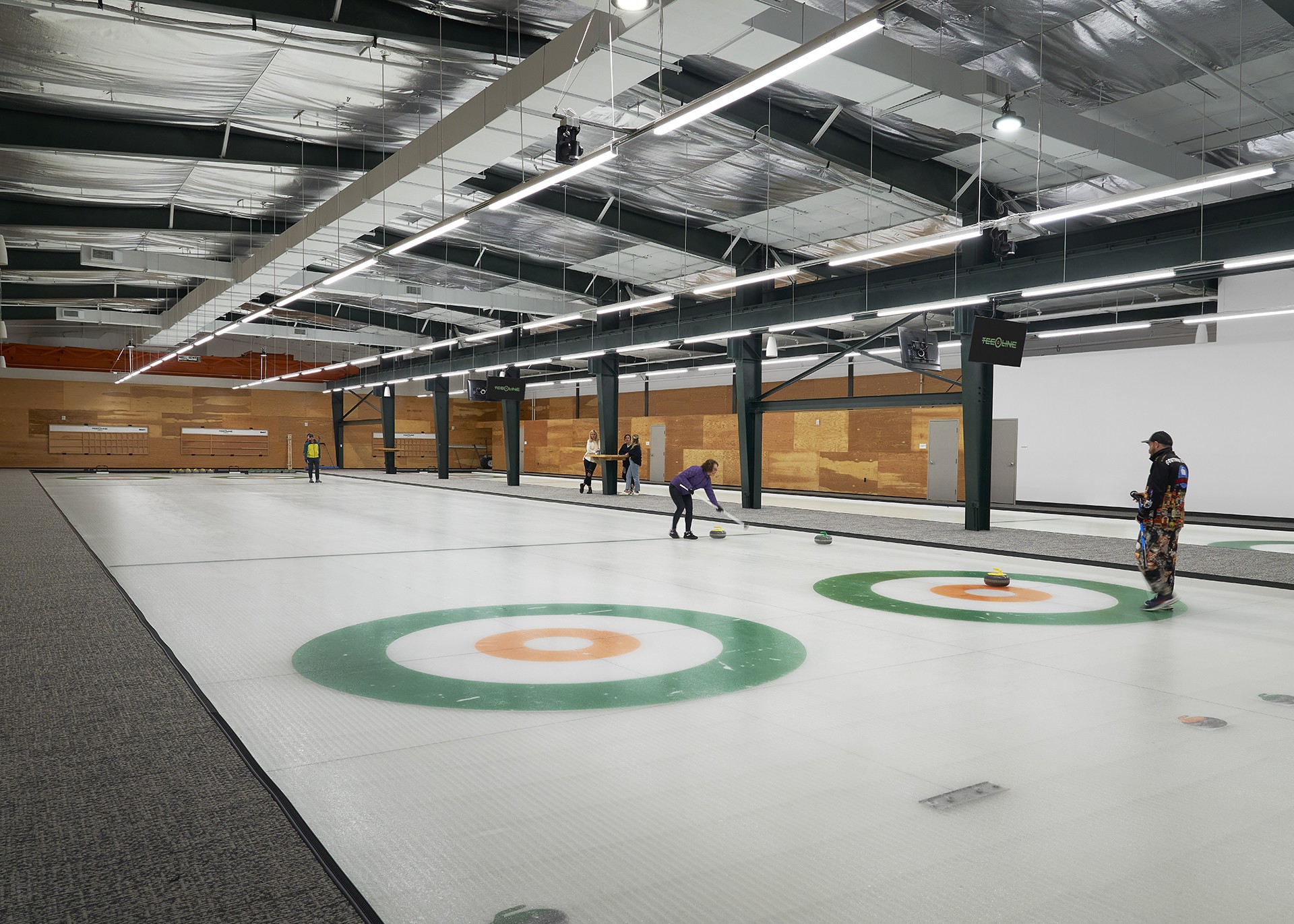 TeeLine is a new curling facility – the first dedicated curling ice in the state – located in an old 25,000 sf steel fabrication shop. The owner fell in love with curling after the end of his NFL career – craving competition without the physical demands of football – and traveling back and forth to Minnesota to practice was less than ideal.