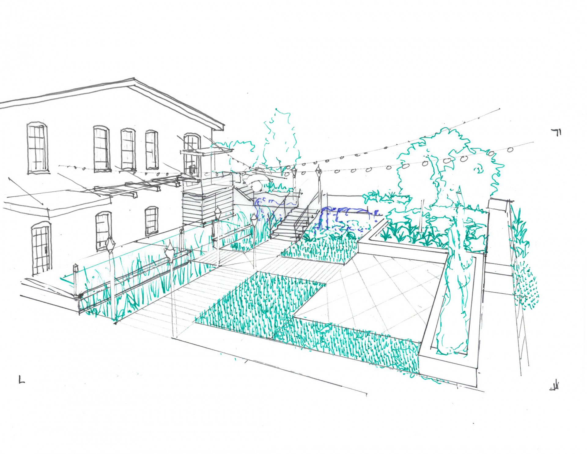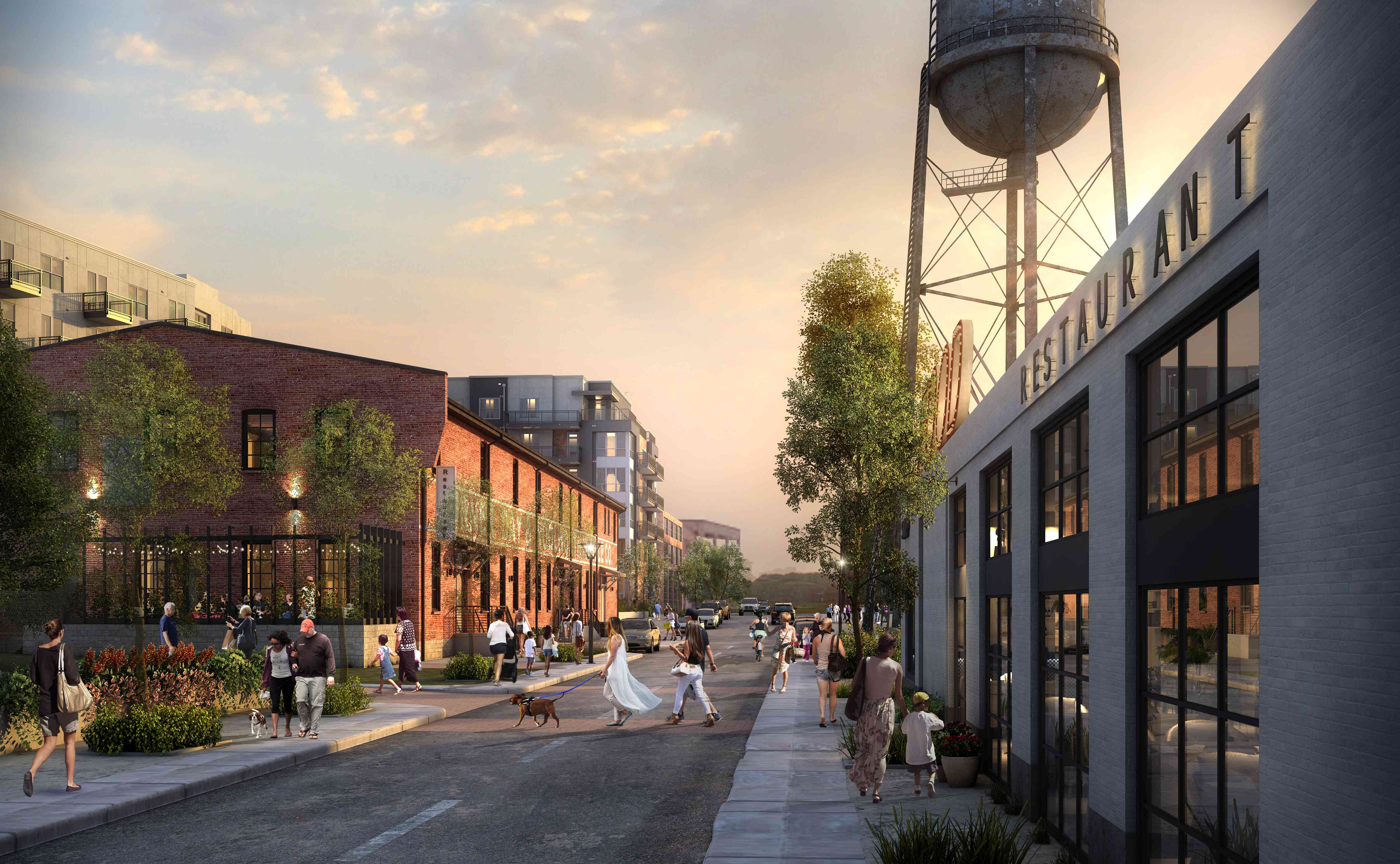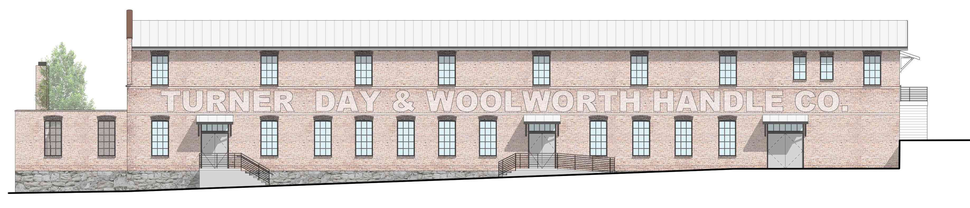 The exterior of the building will receive necessary masonry restoration, new steel windows, a new insulated roof, and new entrances. New entry canopies, signage, and outdoor spaces will be modern, eclectic-yet-complementary additions to the historic character of the existing building. A central plaza space between the historic Hammermill building and the new multi-family development is envisioned as both a community gathering space and a modern, urban plaza.