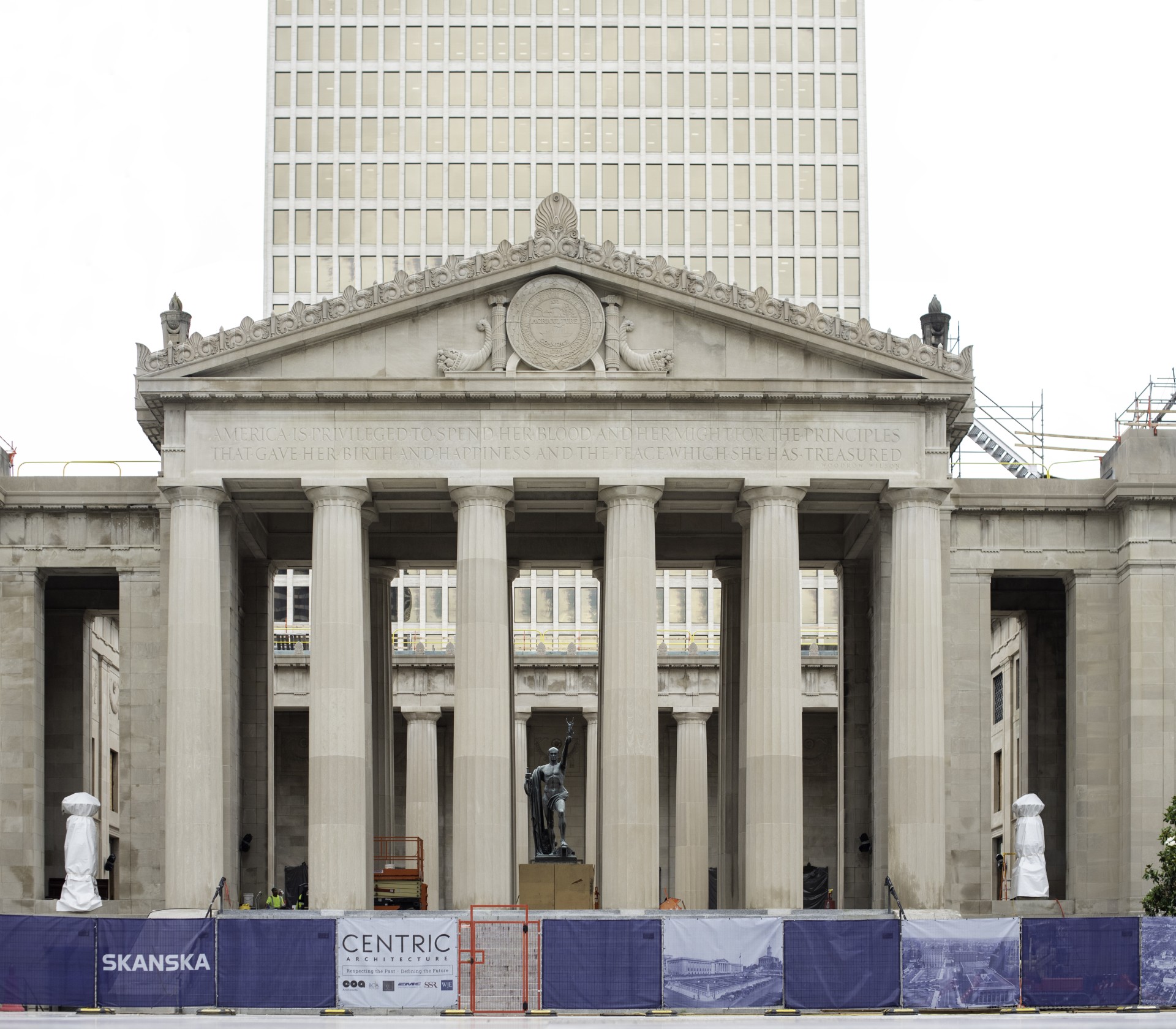 Centric’s team of consultants includes EOA Architects and WJE who are shepherding the restoration of the historic terra cotta and stone building envelope. After restoration, the project will have better lighting, better air quality, lower energy usage, full accessibility to all floors (unlike today when there is no wheelchair accessibility to the front doors to the auditorium, or to the upper level of the auditorium.) And finally, the original building had a light-well in the north/office wing that was filled-in in 1958. This light-well will be re-created to bring daylight back to all the original office locations.